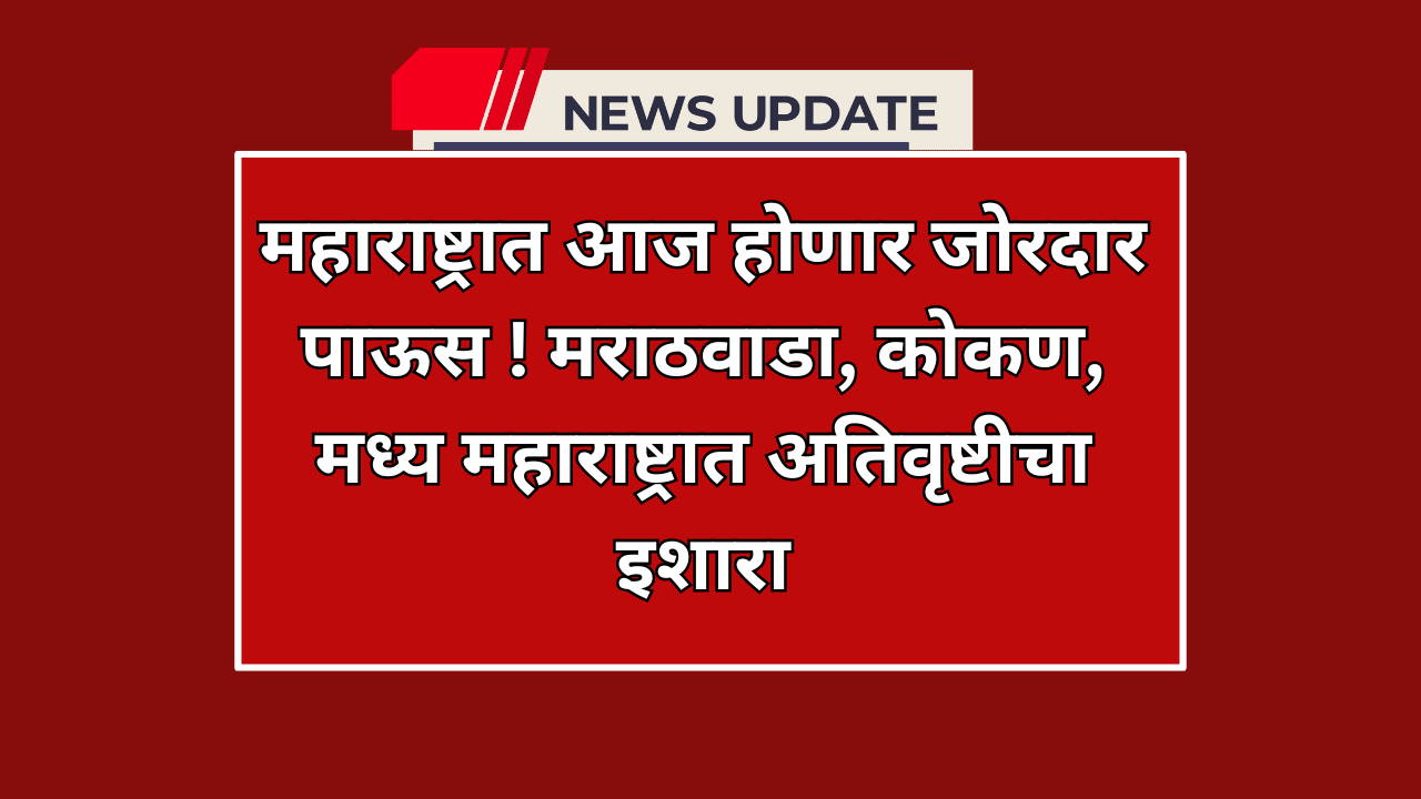 महाराष्ट्रात आज होणार जोरदार पाऊस ! मराठवाडा, कोकण, मध्य महाराष्ट्रात अतिवृष्टीचा इशारा